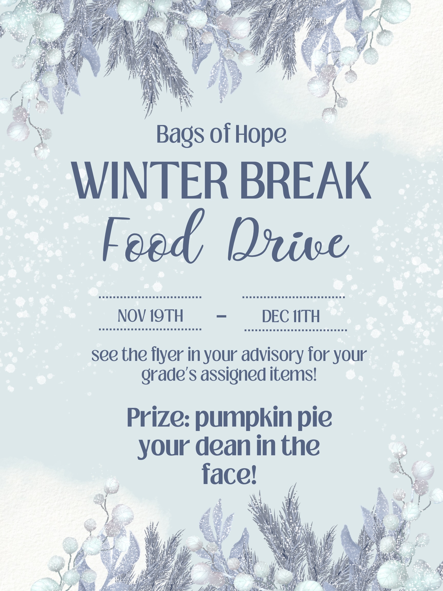 Just a reminder that December 19th is the last day for students to go through the lost and found before it gets donated. Don’t forget to check the lost and found by the cafeteria, as there are some items that probably don’t belong to lower or middle school students.