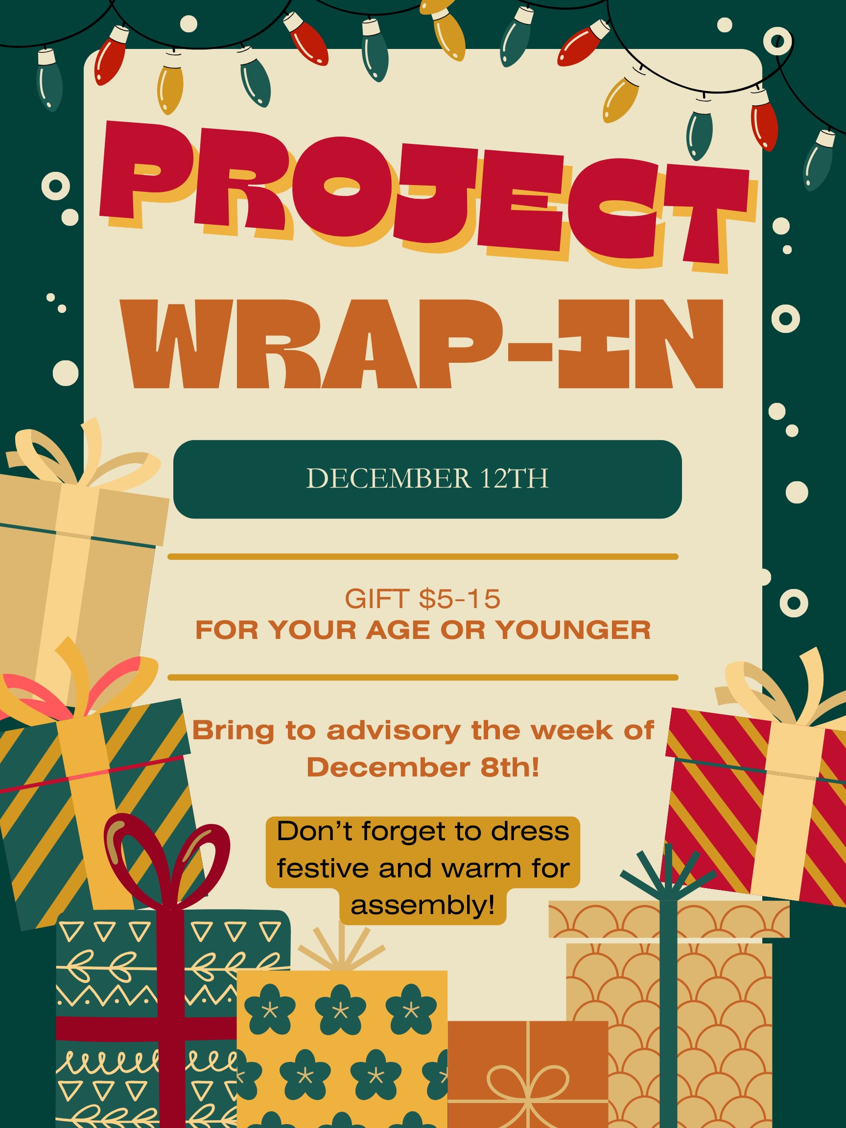 Don’t forget to bring a warm jacket and maybe a blanket for our Project Wrap-in assembly tomorrow. It will be cold!!! Brrrrrr