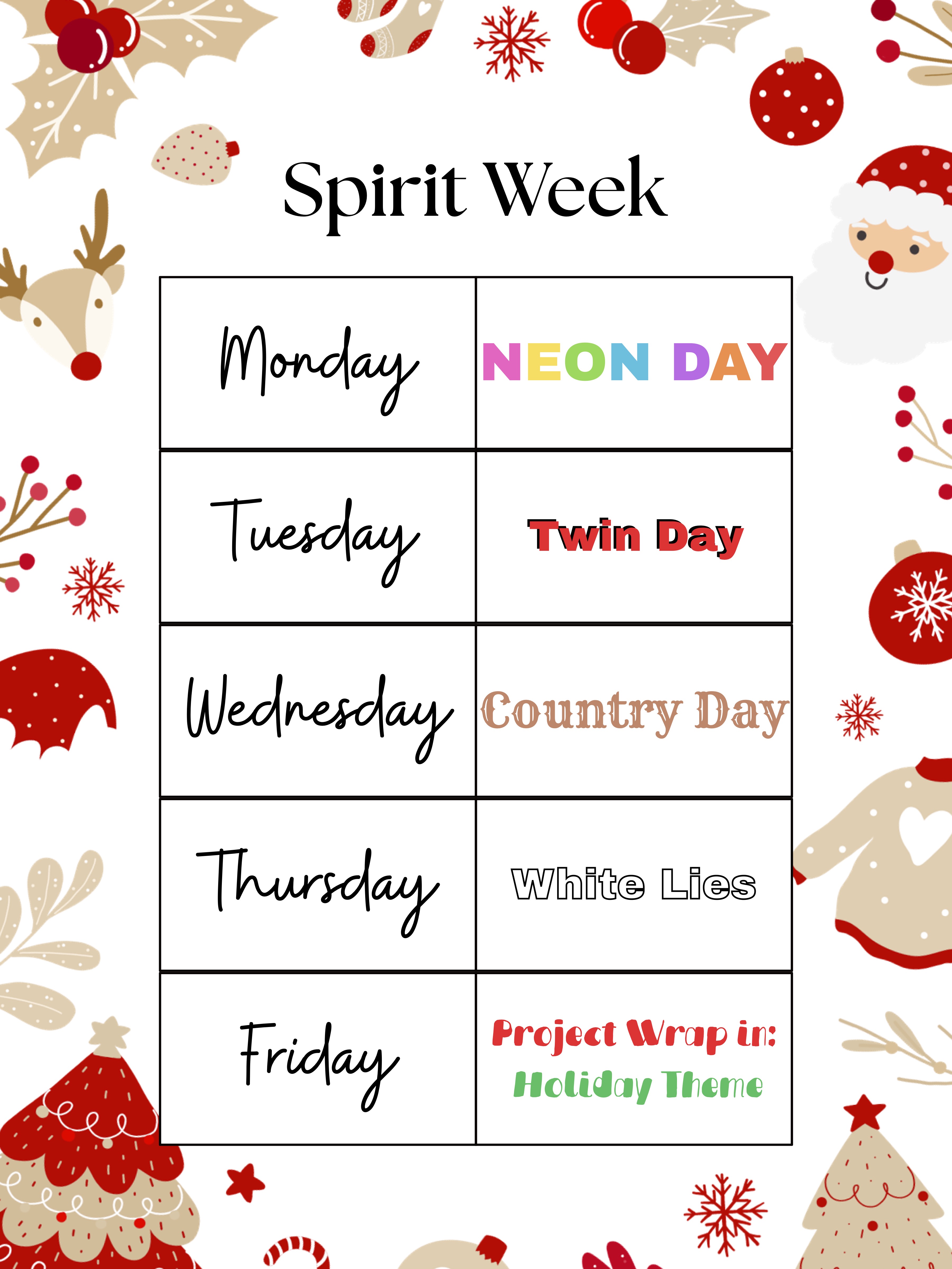 These students, Conger Chalfant, Canon Diana, Tyler Donia, Annabelle Eaton, Ben O’Hara, Josh Miah, Emmerson Perry, Evelyn Romley, Sam Simon, Lucas Shah, Yana Kramar, Kendall Laguerre all demonstrated TEAMWORK by working behind the scenes to make Winter Wonderland possible. They helped set up tents and tables, supported technology needs, assisted parent and student volunteers and guest performers, and led the cleanup and packing efforts after the event. Their collaboration, reliability, and positive energy ensured everything ran smoothly, and we are deeply grateful for their leadership.