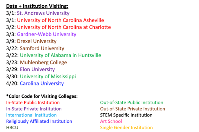 Seniors, Juniors & Sophomores are invited to sign-up in SCOIR for visits with College Admission Representatives. Representatives have the option to visit Cannon School in-person or via Zoom. Check SCOIR for the most up-to-date listing of college representative visits and to learn in what format they will visit Cannon. Use this Zoom Meeting Link to connect for virtual visits. You may come to The Cube if you are on campus during the rep visit and need a place to log into the Zoom session. We recommend you bring headphones for the Zoom visit!