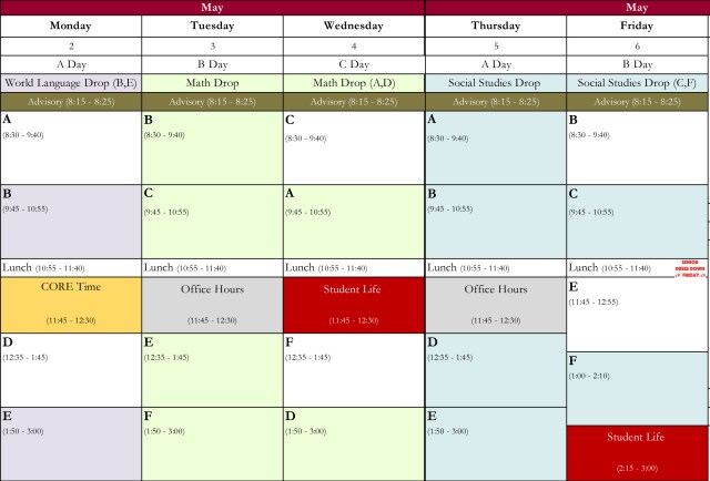 At 11:45 a.m. today, May 2nd, plan to report to your advisory for CORE. You will have a short activity to complete in Scoir for College Counseling.