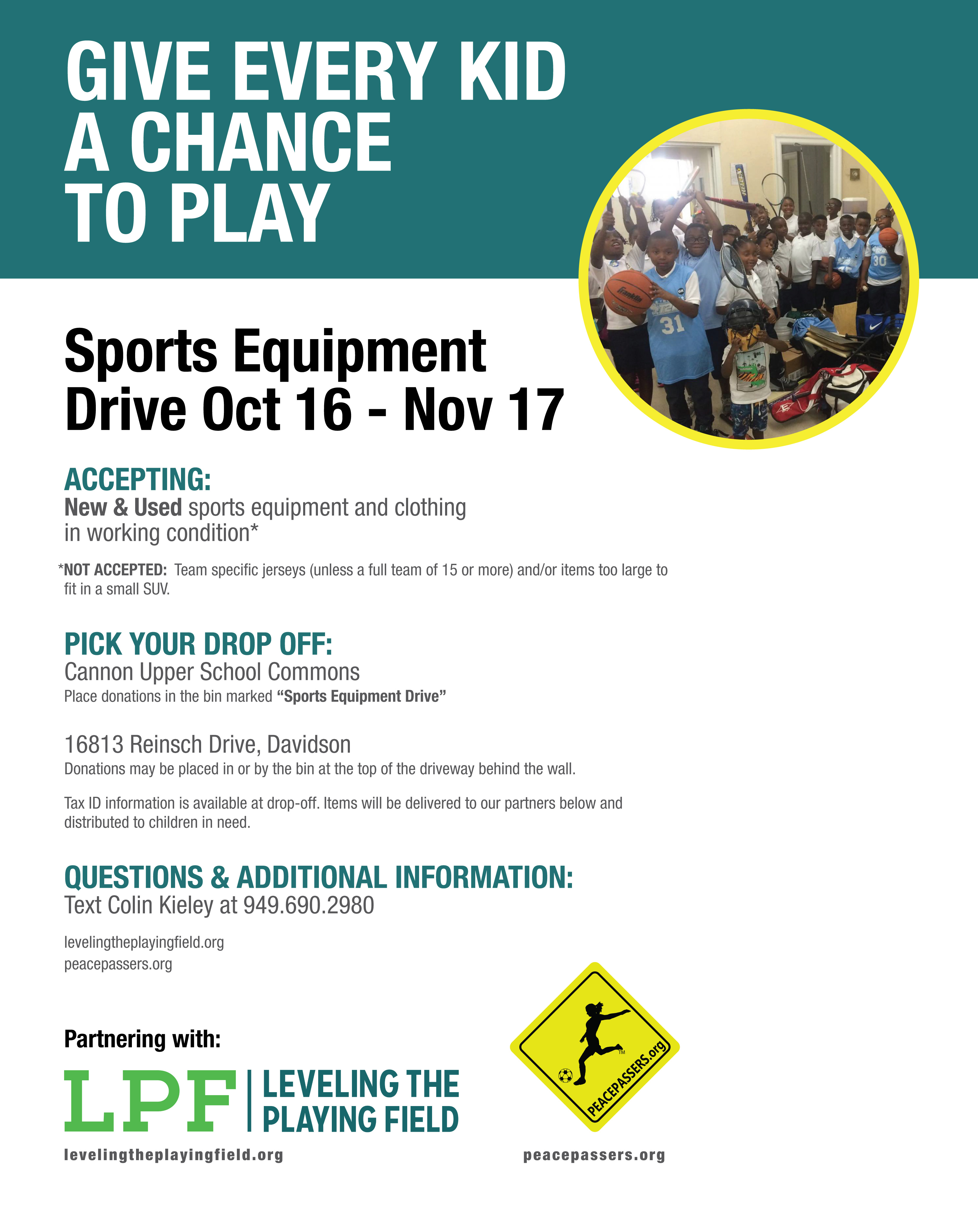 Last Chance to Donate!! The Sports Equipment Drive ends THIS Friday, November 17th!
