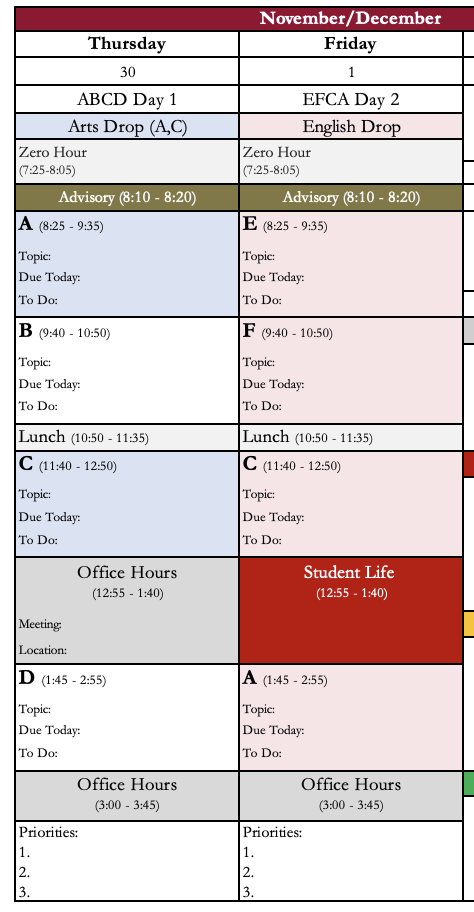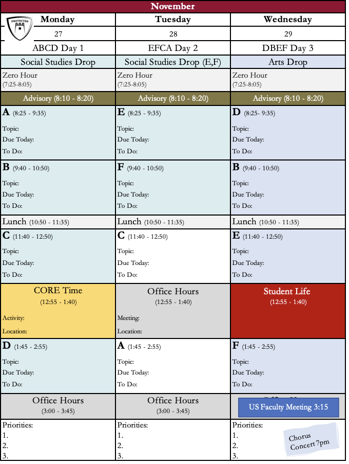 Freshmen who sat for the PreACT on October 20 can pick up score reports from their college counselor. If you’d like access to your PreACT test booklet, please see Mrs. Kulp in room 606 any time before Friday, Dec. 15.