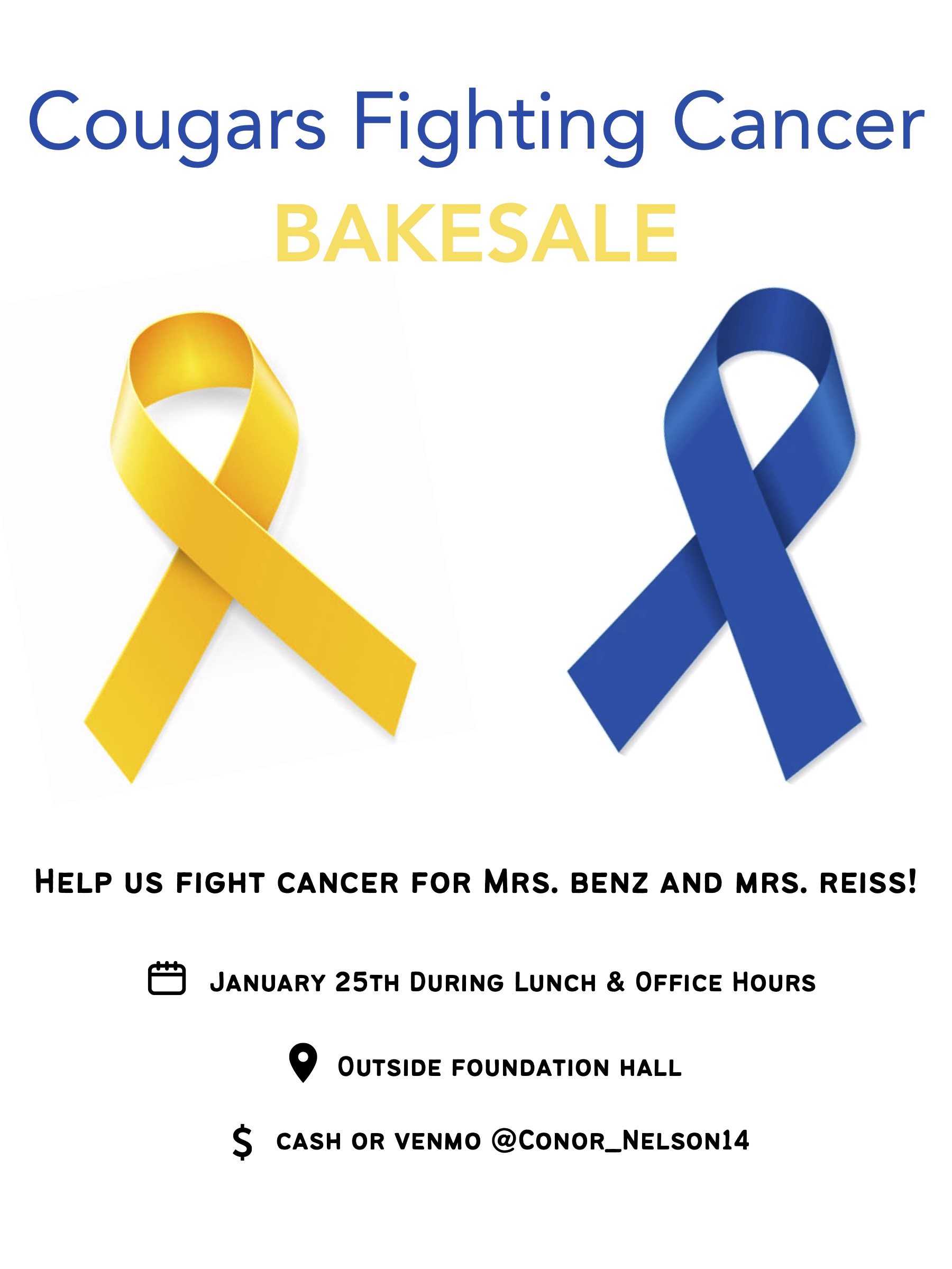 If you would like to support the Benz family in their battle against cancer, please drop by Dean Booker’s office and pick up a bracelet to show your solidarity!![]()