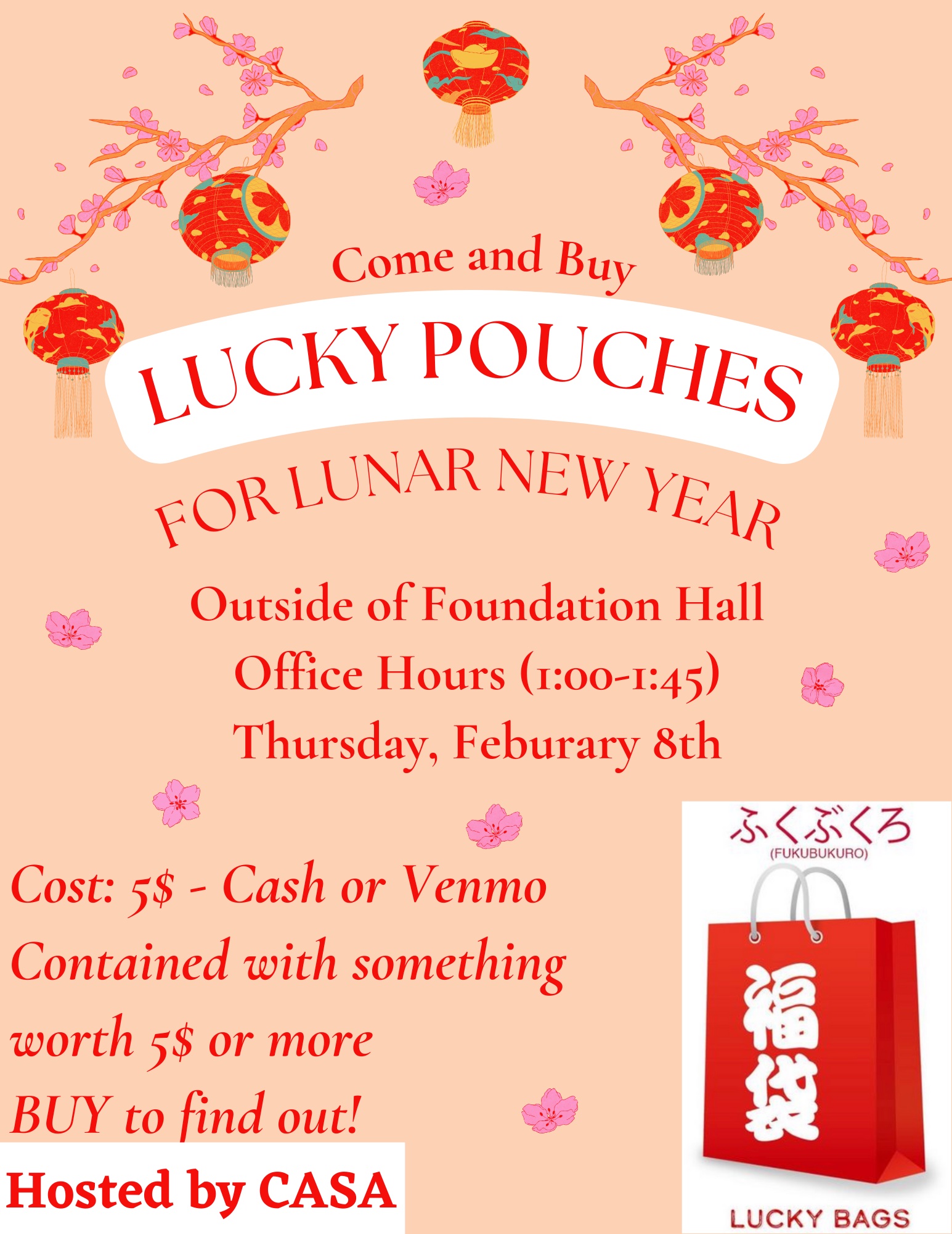 This Saturday, February 10th, is Chinese New Year, also known as the Spring Festival or 春节. You will notice some decorations throughout campus celebrating the Year of the Dragon. Here are some common sayings to wish someone a happy new year:
