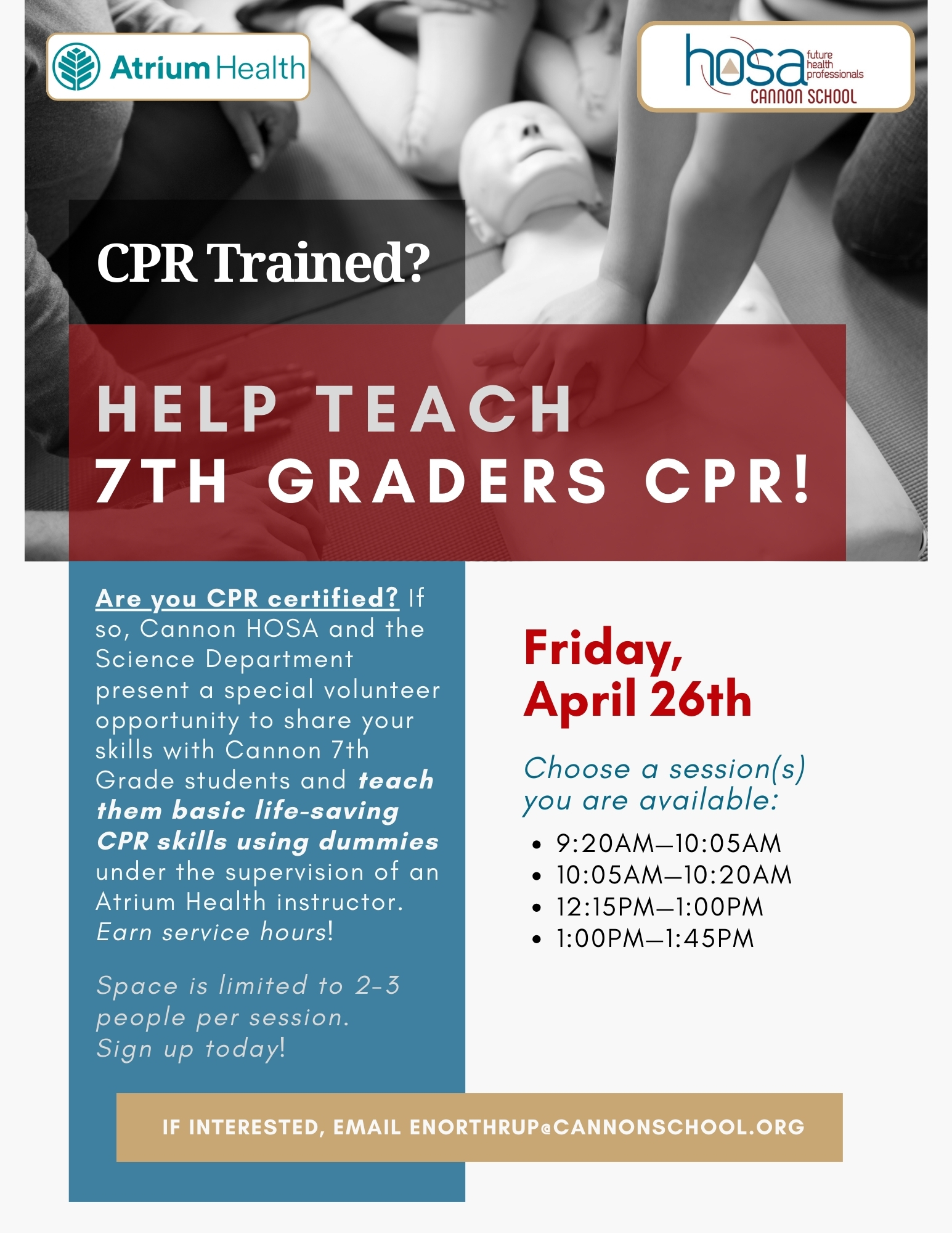 We are looking for Upper School students who could partner with students who do not have a visitor and engage in a variety of activities throughout the morning. You will be partnering with a student or for classroom activities, cookies/lemonade, and a photo booth memento! Please reach out to Mrs. Fox (mfox@cannonschool.org) as soon as possible if you want in on this amazing opportunity!