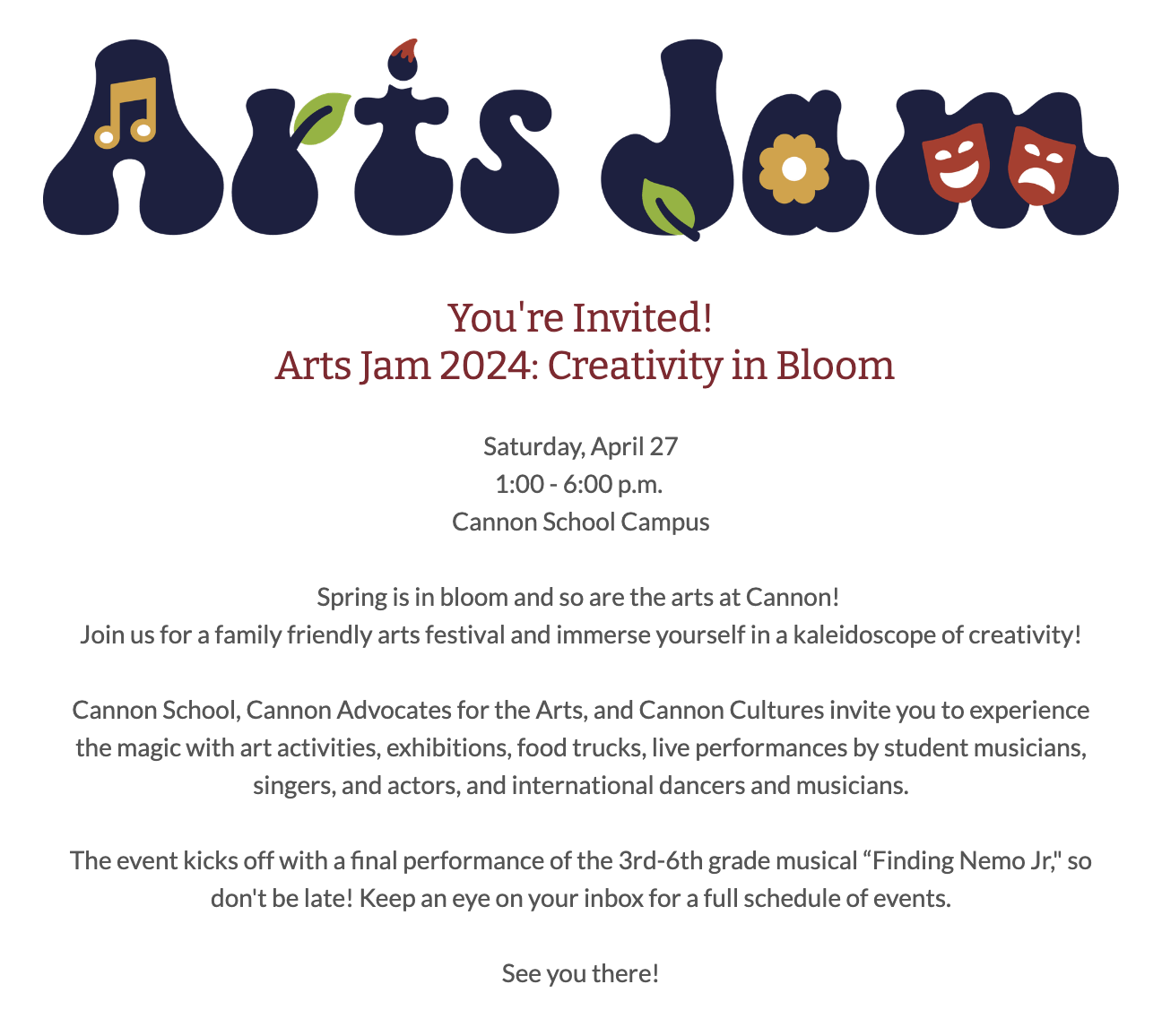 The Department of Student Connection has identified a need to improve student group and community representation in our social media. Please utilize this form to submit photos, videos, flyers, etc. with captions through this Google Form OR send files and captions to Dean Zelaya mzelaya@cannonschool.org to be posted on the @CannonUpperSchool Instagram account. We would like all voices, groups, organizations, and clubs to be represented, united, and cherished! Reach out to Ashmi Trivedi ’24 atrivedi@cannonschool.org if you have questions.