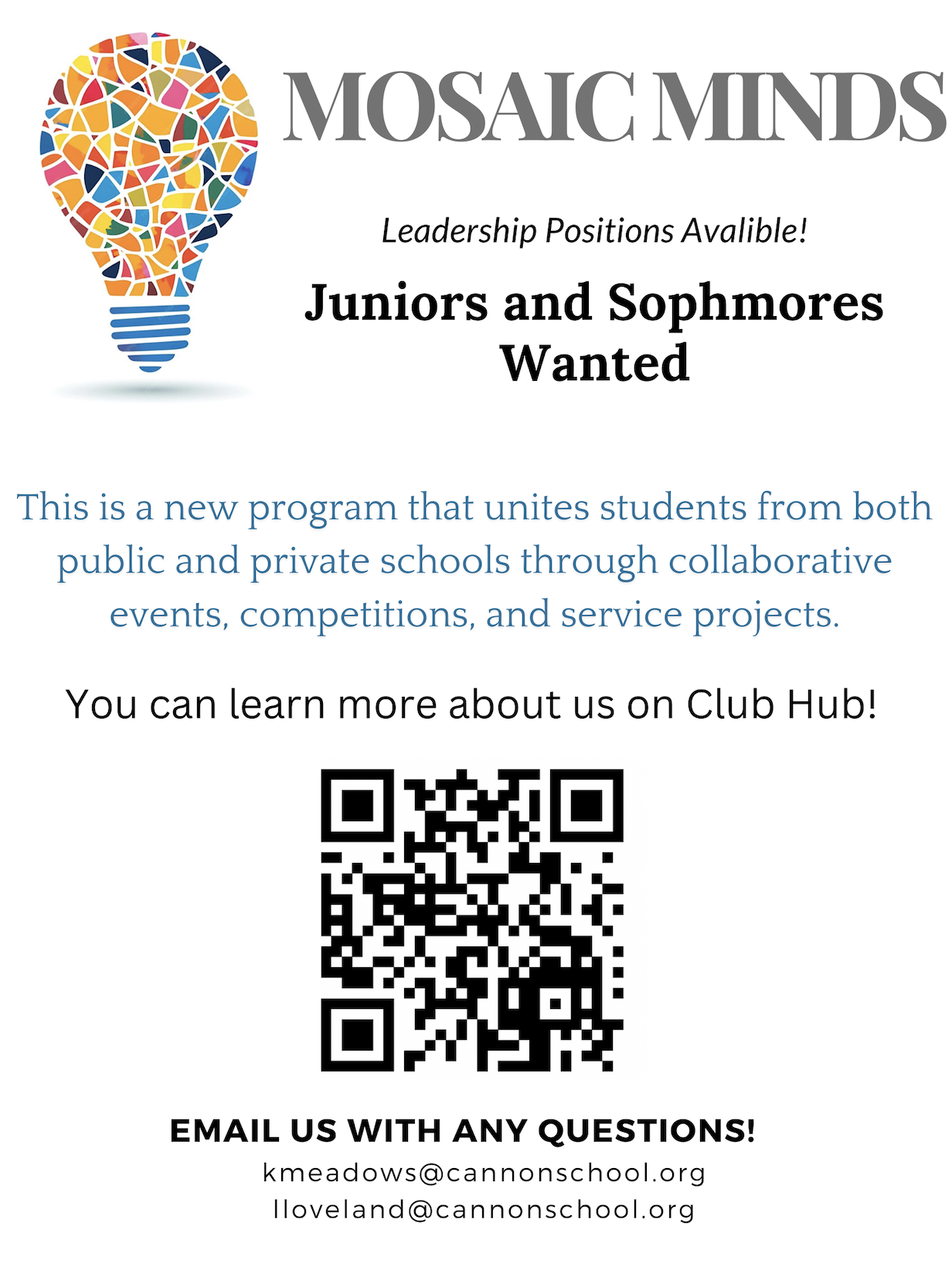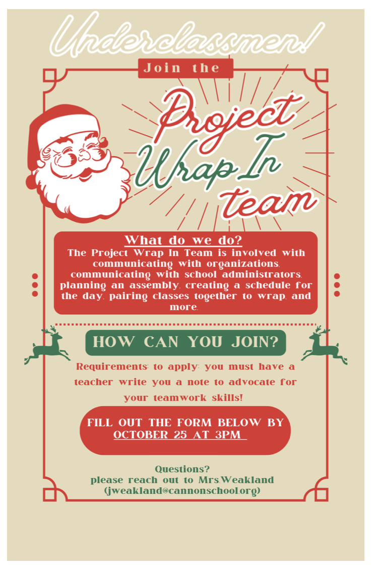 Please reach out to Mrs. Weakland with any questions.