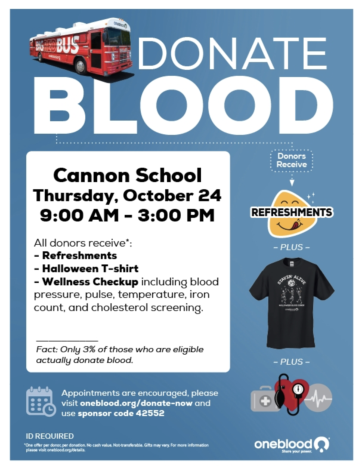 Cannon Upper School will also receive a monetary donation for each unit of blood donated.
