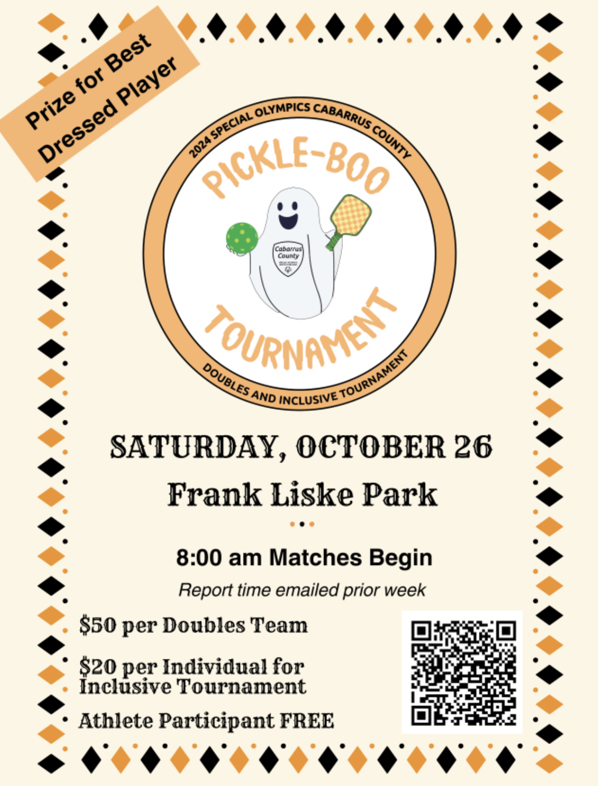 Special Olympics Cabarrus County is hosting a Halloween-themed pickleball tournament to raise money for our organization. We are seeking doubles teams to play, individuals to play with Special Olympics athletes in the inclusive tournament and volunteers to help. To get involved with this event, click below.