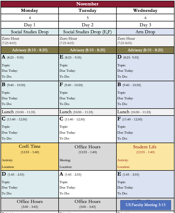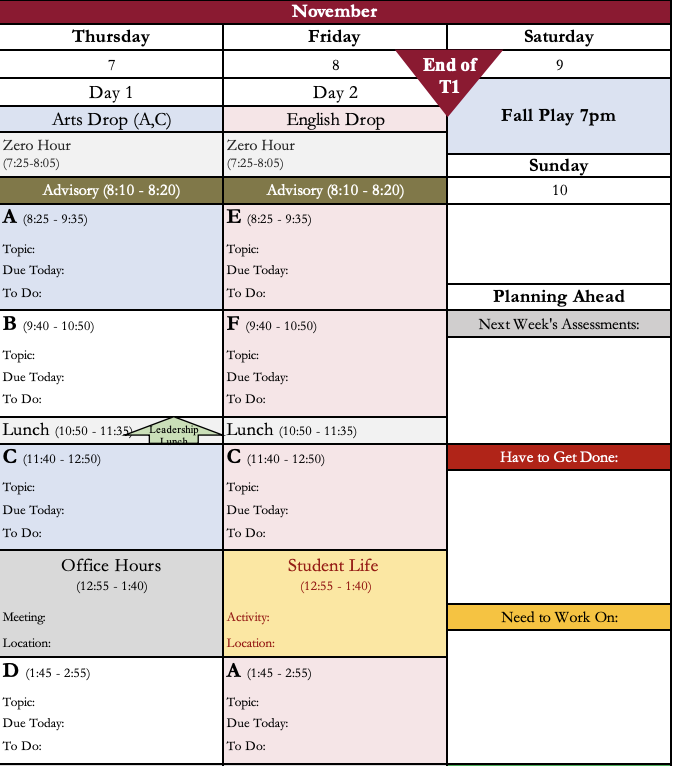–> Please make sure to arrive by the first 10 minutes of the block if you are making up an assessment.