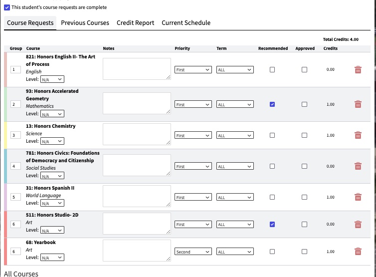 - You have 7 classes listed. You should have 6 core classes and 1 alternate classes