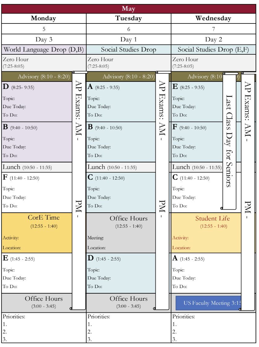 This is a friendly reminder that students will be participating in AP Testing May 5 – May 16 in various locations in and around the Upper School (Foundation Hall, Library, Cube, Study Rooms, CPAC, etc.). Please be mindful of your noise level as you travel around these spaces the next two weeks! Thank you!