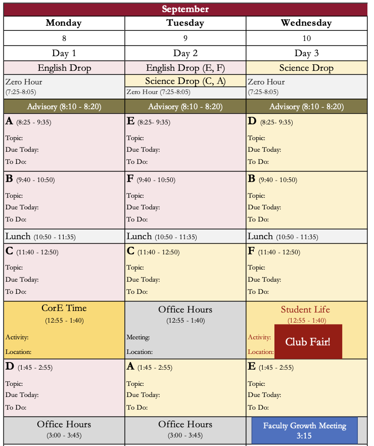 **PLEASE NOTE CHANGES FROM WHAT IS IN YOUR PLANNER**