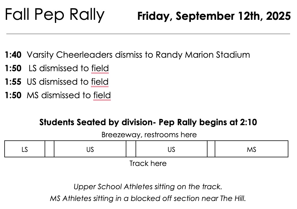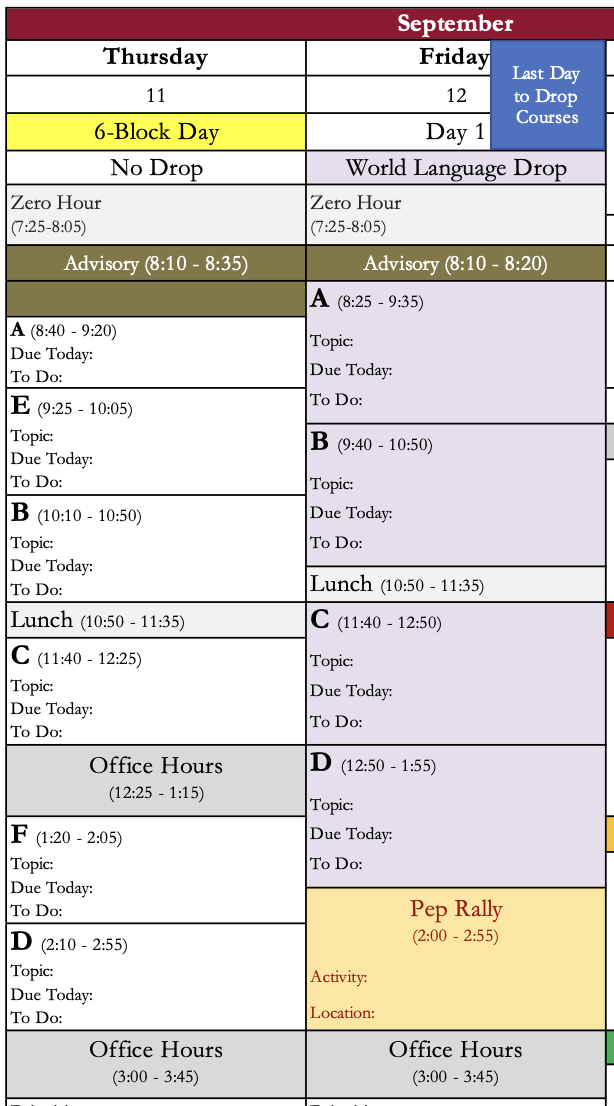 **PLEASE NOTE CHANGES FROM WHAT IS IN YOUR PLANNER**