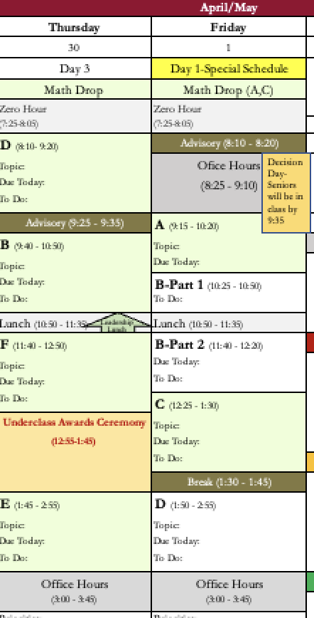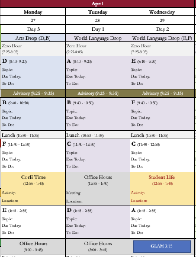 We have some big schedule changes next week.Β Please note our new schedule below: