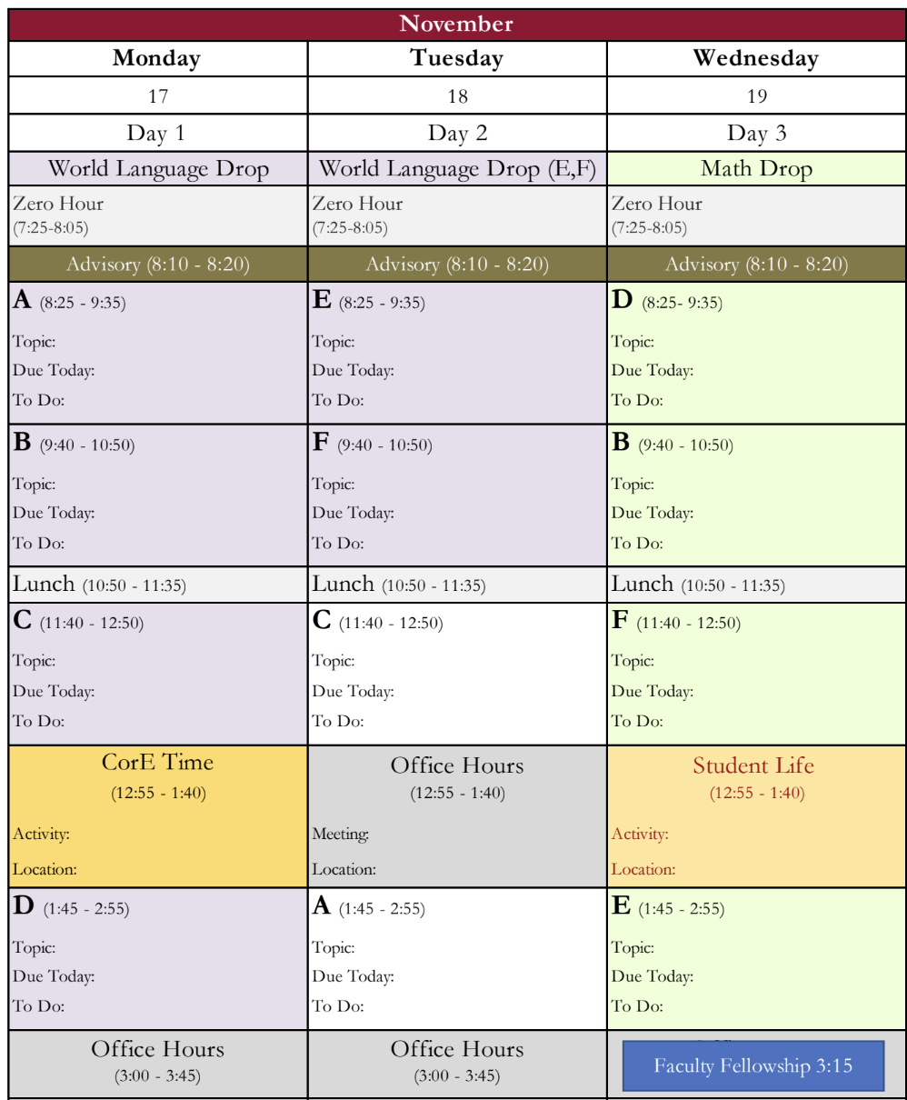 Will Davis demonstrated TEAMWORK by helping Mr. Borowicz move a podium out of one classroom and into another. Thank you Will! (Core Values two days in a row!!)