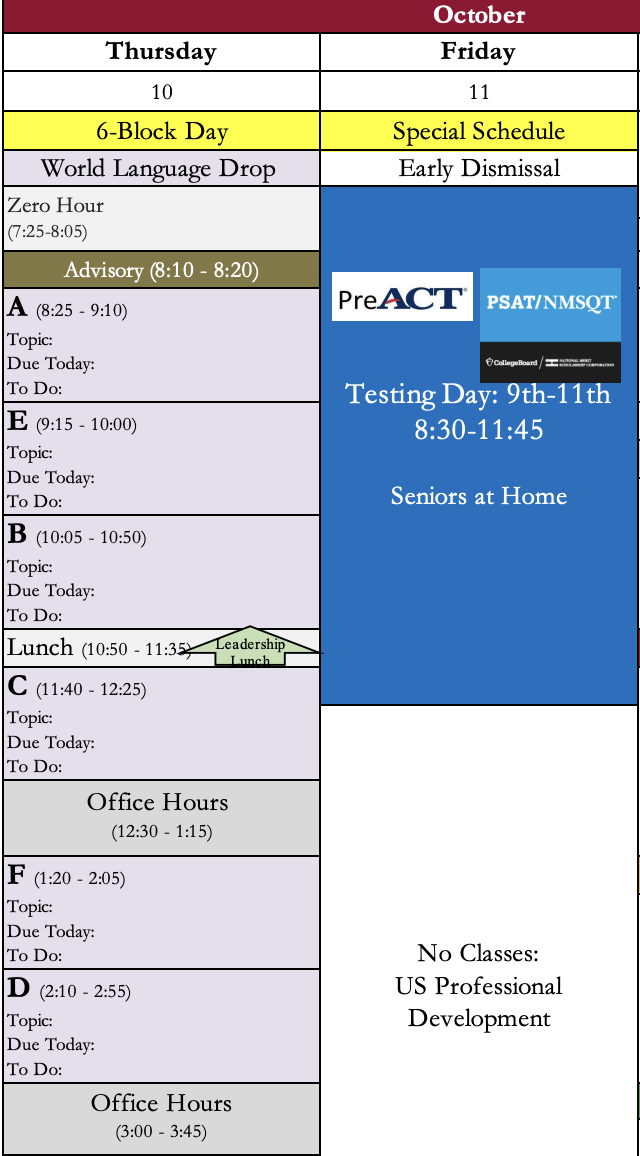 AP/AT Students: AP Exam registration will close on Friday, November 1. Please log in to AP Classroom to adjust your exam decision indicator for each AP/AT course you are taking from “UNDECIDED” to “Yes” or “No”. If you have questions about AP Exam registration and ordering, please see Mrs. Kulp ASAP.